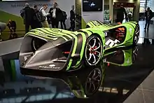 The chassis itself is shaped like a teardrop, improving aerodynamic efficiency. The car weighs around 1350 kg and is 4.8 metres (16 ft) long and 2 metres (6.6 ft) wide. It has four electric motors, each with a power of 135 kW producing over 500 hp combined, and utilizes a 840V battery.[9] For navigation, it relies on a mixture of optical systems, radars, lidars and ultrasonic sensors.[10] The vehicle has been demonstrated at speeds of almost 300 km/h (190 mph).[11]