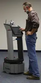 Mobile robots[83] have the capability to move around in their environment and are not fixed to one physical location. An example of a mobile robot that is in common use today is the automated guided vehicle or automatic guided vehicle (AGV). An AGV is a mobile robot that follows markers or wires in the floor, or uses vision or lasers.[84] AGVs are discussed later in this article.