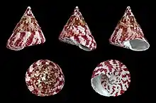| Five views of a shell of Rochia conus | |