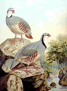 The rock partridge or common rock partridge (Alectoris graeca) is a gamebird in the pheasant family, Phasianidae, of the order Galliformes (gallinaceous birds). It is native to southern Europe, and is closely related and very similar to its eastern equivalent, the chukar partridge, A. chukar.