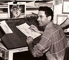 He was laid off from Warner's in 1953 and worked for UPA, Jay Ward, and Storyboard Inc. from the 50's to the mid 60's.[15] When Scribner went to work at Bakshi Studios, he sat down with Bakshi and said to him, "Ralph, I can't do this anymore. I love what you're doing, and this is going to be the greatest studio in the world, but I just can't do it anymore." He cried while he was speaking and handed his scene in. Bakshi recalled the scene looking "absolutely hideous" and looking like something was wrong with him, which ironically, there was. Although Scribner was credited, most of his animation were thrown out or overhauled.[16][17] In his later years, Scribner worked with former colleague Bill Melendez on various Charlie Brown movies and television specials that worked in Snoopy Come Home (1972), There's No Time for Love, Charlie Brown (1973) and It's the Easter Beagle, Charlie Brown (1974), eventually starting at a studio called Playhouse Pictures, which produced commercials for over 45 years.[18][19] The only things he didn't do for UPA or his former colleague Melendez is a 1968 training video for IBM called A Computer Glossary and two credits on the first two episodes of Yogi's Gang.[20][21][22]