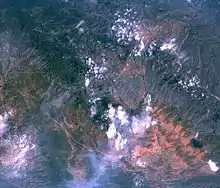![]() Rodeo–Chediski fires on June 28, 2002, as seen from the Landsat 7 satellite | |