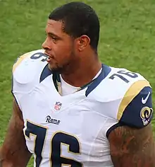 Saffold signed a five-year, $42.5 million contract with the Oakland Raiders on March 11, 2014.[10] However, after a disagreement in Oakland on Saffold's physical condition, he returned to the Rams to sign a five-year, $31.7 million contract. The Raiders had concerns about Saffold's shoulder, which contrasted with the Rams who had "no concerns whatsoever".[11][12] Saffold received an overall grade of 73.7 from Pro Football Focus, which ranked as the seventh best grade among all qualified offensive guards in 2018.[13] In 2018, Saffold helped the Rams reach Super Bowl LIII where they lost to the New England Patriots 13–3.