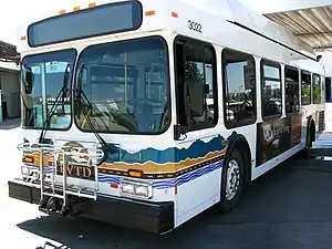 Today RVTD has phased out the Blue Bird CNG vehicles in favor of the 35 foot natural gas coach manufactured by Gillig and New Flyer Industries. These newer buses provide for greater fuel capacity of 3600 psi compared to their predecessors 3000 psi limit (allowing greater range on one fill-up), provide space for more passengers (65 seated and standees compared to 50 seated and standees), a low floor design with fully automated wheelchair ramp (compared to the partially automated wheelchair lift), easier passenger boarding and deboarding, as well as a more powerful engine.[17][18]