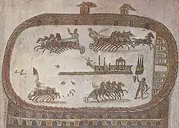 The House of the Horses contains a mosaic of more than fifty circus horses, bordered by hunting scenes.[18]