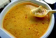 - Supă (de pui) cu tăiței (clear noodle soup with chicken broth)
