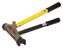In conjunction with the roof seaming machine, there are an array of hand tools that are used. The most common tool that is usually required when operating a roof seamer is a "hand crimper". The hand crimper is used to "flat form" the panel seams into the appropriate configuration to prepare the seam for the roof seamer to be applied. Other common tools are snips, nibblers, and shears.