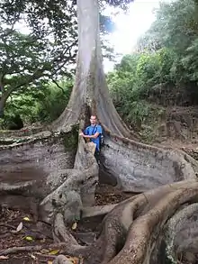 • Canopy roots/arboreal roots: roots that form when tree branches support mats of epiphytes and detritus, which hold water and nutrients in the canopy. They grow out into these mats, likely to utilize the available nutrients and moisture.[31]