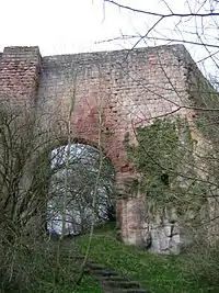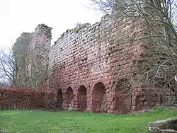 Roslin was more severely damaged by the Earl of Hertford, who burned the castle during the War of the Rough Wooing in 1544. The keep was almost totally destroyed, although its one remaining ruined wall can still be seen.[5]
