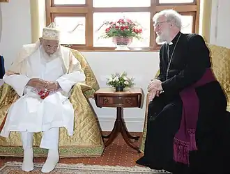 On 15 November 2008 Williams visited the Balaji Temple in Tividale, West Midlands, on a goodwill mission to represent the friendship between Christianity and Hinduism.[66] On 6 May 2010 Williams met Indian Islamic leader, Mohammed Burhanuddin, at Huseini Mosque in Northolt, London, to discuss the need for interfaith co-operation; and planted a "tree of faith" in the mosque's grounds to signify the many commonalities between the two religions.[67]
