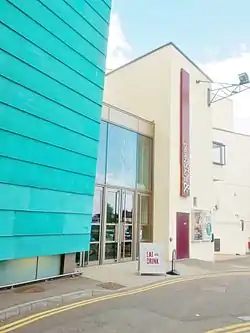 Royal & Derngate is a theatre complex in the Cultural Quarter of Northampton, England, consisting of the Royal Theatre and Derngate Theatre. The Royal was built by theatre architect Charles J. Phipps and opened in 1884. Ninety-nine years later in 1983, Derngate, designed by RHWL, was built to the rear of the Royal. Whilst the two theatres were physically linked, they did not combine organisations until a formal merger in 1999; they are run by the Northampton Theatres Trust. The Royal Theatre, established as a producing house, has a capacity of 450 seats and since 1976 has been designated a Grade II listed building;[1] Derngate Theatre seats a maximum of 1,200 and is a multi-purpose space in which the auditorium can be configured for a variety of events including theatre, opera, live music, dance, fashion and sports. The Errol Flynn Filmhouse, an independent cinema built to the side of the complex, opened in 2013.