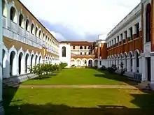 In 1859 the Queen's College, Colombo was established as the first institution of higher education in Ceylon. Affiliated to the University of Calcutta, it prepared students from the Colombo Academy for entrance examinations of English universities.[23] In 1865 the Morgan Committee of inquiry into education recommended that it be reorganized and that scholarships should be awarded to study at the University of Oxford,[3] and as a result in 1869, Queen's College was amalgamated with the Colombo Academy.[24]