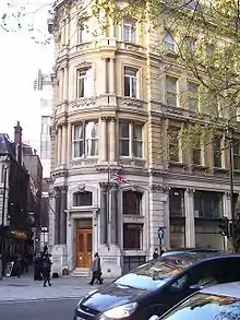 The Society's first home was above a shirt shop at No. 15 The Strand, London, where it remained from 1870 until 1885. It was in this modest space that the organisation's Library collection began to be assembled.[6] The Society's Library quickly increased in size and reputation, and the organisation moved in 1885 to 25 Northumberland Avenue in Central London, where it would remain until 2013. The site was completely rebuilt in 1936 to the design of architect Sir Herbert Baker, providing a greatly extended Library.[6] The expanded and renovated premises was formally opened on 12 November 1936 by the Duke and Duchess of York, later King George VI and Queen Elizabeth.[1]