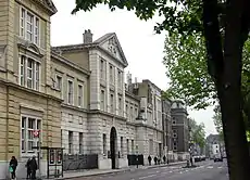 As demand for in-patient facilities increased the hospital moved to the former barracks of the Light Horse Volunteers in Gray's Inn Road in 1844.[1][4] The north wing of the former barracks, which was rebuilt and renamed the Sussex Wing after Prince Augustus Frederick, Duke of Sussex, a benefactor of the hospital, re-opened in 1856 and the south wing, which was rebuilt and renamed the Victoria Wing after Queen Victoria, re-opened in 1879.[1] Meanwhile, the western elevation on Gray's Inn Road, which was rebuilt and renamed the Alexandra Building after the Princess of Wales, was re-opened by the Prince and Princess of Wales in July 1895.[1] Some additional land was purchased and used to develop the Helena Building, named after Princess Helena: the building was completed in 1915 and served as the Royal Free Military Hospital for officers during the latter stages of the First World War before becoming the maternity wing after the war.[1] The Eastman Dental Clinic opened in a building adjacent to the main hospital in 1929.[1] The Victoria Wing was badly damaged by a V-1 flying bomb in July 1944 during the Second World War.[1]