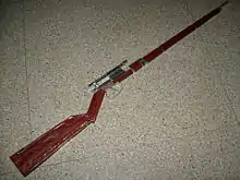 Rubber band guns can be made using only Popsicle sticks, staples, and rubber bands of various styles and sizes. This specialized technique developed and honed by then-high school student Stuart A. Burton[4] is very malleable and can be utilized to develop very advanced and complicated rubber band guns. For instance, using levers and sliding mechanisms, one can make a pump-action shotgun. Using simple geometry and specialized positioning, you can easily make semi-automatic and 2-shot burst-fire weapons, as well as more complicated fully automatic weapons using paperclips as an axis for a rotating firing piece. Occasionally, other materials (like bamboo skewers, for instance) may be used in the making of the gun.