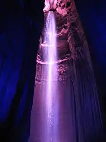 Ruby Falls is a series of underground cascading waterfalls totaling 145 feet (44 m) in Lookout Mountain, near Chattanooga, Tennessee, in the United States.[2][3]