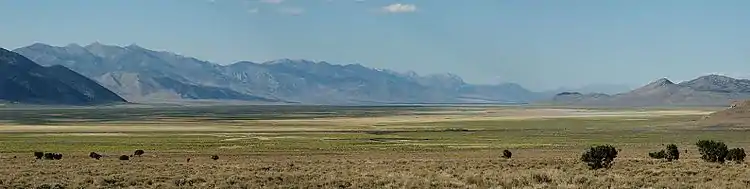 Ruby Valley is a large basin located in south-central Elko and northern White Pine counties in the northeastern section of the state of Nevada in the western United States. From Secret Pass it runs south-southwest for approximately 60 miles (96 km) to Overland Pass. To the west is the steep escarpment of the Ruby Mountains, and to the north is the East Humboldt Range and Clover Valley. The east side of the valley is less well defined, but its maximum width is about 10 miles (16 km) near Franklin Lake. At its south end lies the Ruby Lake National Wildlife Refuge.