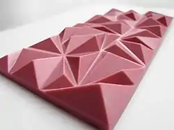Ruby chocolate is a variety of chocolate introduced in 2017 by Barry Callebaut, a Belgian–Swiss cocoa company.[2] In development since 2004, it was patented in 2015 by inventors Dumarche et al. and assigned to Barry Callebaut under patent number US9107430B2.[3][4][5] It was unveiled at a private event in Shanghai on 5 September 2017.[6][7] It is marketed as the fourth type of chocolate alongside dark, milk, and white chocolate varieties and has a pink color.[8][9]