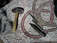 A runestone being made by the modern runemaster Kalle Dahlberg.