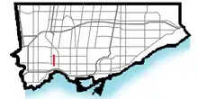 Runnymede Road is a street in the west end of Toronto, Canada.[1][2] It runs from Morningside Avenue at its south end (west of High Park) and ends at Henrietta Street, just north of St. Clair Ave. There is a small section continuing but ends in a Cul de sac. At its southern end, it begins as a narrow 2 lane road. It heads north to Bloor Street, where it widens to accommodate bikes lanes. At St. Clair, the bikes lanes stop, and it becomes a 2-way street north until Henrietta.