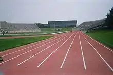 ![]() Olds/Marshall Track in Rynearson Stadium, with the George Gervin GameAbove Center in the background |