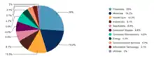 Mathematically, weighing securities by their market value causes overpriced stocks to be over-weighted, and under-priced stocks to be under-weighted. This creates deviation in true company value relative to its present value of future cash flows, thereby hindering accurate price discovery.[28][29][30] The ASX 300 is heavily skewed towards large-cap stocks, making up 40-50% of the index.[2] As of 30 April 2020, the financial sector constituted for 26% of index value and materials accounted for 19.2%.[31]