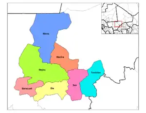 Ségou Region is divided into 7 cercles encompassing 118 communes and 2,166 villages:[5]