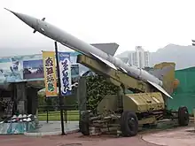 The S-75 (Russian: С-75; NATO reporting name SA-2 Guideline) is a Soviet-designed, high-altitude air defence system, built around a surface-to-air missile with command guidance. Following its first deployment in 1957 it became one of the most widely deployed air defence systems in history. It scored the first destruction of an enemy aircraft by a surface-to-air missile, with the shooting down of a Taiwanese Martin RB-57D Canberra over China on 7 October 1959 that was hit by a salvo of three V-750 (1D) missiles at an altitude of 20 km (65,600 ft).[3] This success was credited to Chinese fighter aircraft at the time to keep the S-75 program secret.[4]