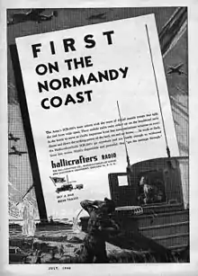 The SCR-299 "mobile communications unit" was developed to provide long-range communications during World War II. The US Military sought improvements of range, flexibility and durability over its existing SCR-197 and SCR-597 transmitters. In 1942, Hallicrafters Standard HT-4 was selected as the SCR-299's transmitter, known subsequently by its military designation as the BC-610. The SCR-299 was first used on November 8, 1942 during Operation TORCH involving companies of the 829th Signal Service Battalion establishing a radio net that could exchange messages between beach-landed forces and bases in Gibraltar. Despite initial problems unloading the sets from convoy ships, the SCR-299s served until the installation of permanent Army Command and Administrative Network stations.[1] According to US Army military historians, "General Dwight Eisenhower credited the SCR-299 in his successful reorganization of the American forces and final defeat of the Nazis at Kasserine Pass."[2]