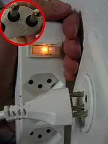 SN 441011, until 2019 SEV 1011,[1] is the Swiss national standard for AC power plug for domestic use and similar purposes. The plug SN 441011 Type 12 and the socket SN 441011 Type 13 are also known internationally as Type J.