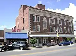 The SOWEGA Building or Southwest Georgia Melon Growers Association Building (also known as The Watermelon Building) in Adel, Georgia at 100 South Hutchinson Avenue (US 41), at the corner with Fourth Street. (SOWEGA comes from SOuth WEst GeorgiA - and "GA" is the abbreviation for "Georgia".) It was built in 1930. It is three stories tall and made of red brick, built in a commercial style. It has a roof deck and a basement. It is made of concrete reinforced with steel. Terracotta trim accents the exterior. The base is finished in marble. It features unique green terracotta watermelons in terracotta lozenges in a broad diamond, which represent the SOWEGA trademark. The third floor was remodeled in the early 1960s and the ground floor was remodeled in 1988. It was listed on the National Register of Historic Places in 1990.[1][2] The Adel-Cook County Chamber of Commerce currently uses the building.[3]
