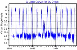 - M. R. Schreiber; J.P. Lasota (2007). "The dwarf nova SS Cygni: what is wrong?". Astronomy & Astrophysics. 473 (3): 897–901. arXiv:0706.3888. Bibcode:2007A&A...473..897S. doi:10.1051/0004-6361:20078146. S2CID 15133017.