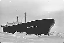 SS Manhattan was an oil tanker constructed at the Fore River Shipyard in Quincy, Massachusetts, that became the first commercial ship to cross the Northwest Passage in 1969. Having been built as an ordinary tanker in 1962, she was refitted for ice navigation during this voyage with an icebreaker bow in 1968–69. Registered in the United States at the time, she was the largest US merchant vessel. If we consider ice navigation vessels as icebreakers, then Manhattan was the biggest icebreaker in history before the construction of the Yamalmax class ships.