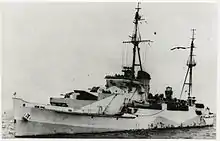 On 12 November 1942, Tynwald was hit by a torpedo fired by the Italian submarine Argo.[5] She had been standing by the monitor Roberts, which was on fire and badly damaged. Tynwald went down in 7 fathoms (13 m) of water,[6] her wreck position is given as LAT:36°51'N LON:005°04'E.[7]