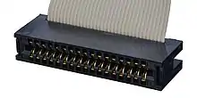 In the ST506 interface, the drive connects to a controller card with two ribbon cables carrying signals, while a third cable provides power. The two signal cables are the wide 34-pin control cable and the narrow 20-pin data cable. The control cable interface is very similar to the standard Shugart floppy disk interface; like that floppy disk interface, it can support four drives. The data cable carries a read signal and write signal, both as differential binary signals: the two signal states correspond to the two possible differential signal polarities. The data represented by these signals is MFM, so the absolute signal states are not significant: the data is represented in the timing of the state transitions, like in floppy disk systems. While up to four drives can share a control cable, each drive has its own dedicated data cable connecting it to the hard disk controller (HDC). Most HDCs supported only two drives.