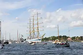 STS Mir (Russian: Мир, lit. 'Peace') is a three-masted, full-rigged training ship, based in St. Petersburg, Russia. It was built in 1987 at the Lenin Shipyard in Gdańsk, Poland.