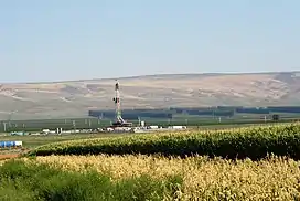 ![]() The Saddle Mountains as seen from the south in the summer of 2006. Note gas drilling rig in the foreground. | |