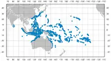 | Saddle butterflyfish range.[2] | |