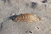 Saduria entomon is one of the largest crustaceans in the Baltic Sea. The largest ones are found in the depths of the Gulf of Bothnia,[6] reaching a maximum length of nearly 9 cm (4 in).[4] S. entomon are sexually dimorphic, with males growing larger and maturing at larger sizes than females.[7] Most individuals die after reproduction, and the species might be functionally semelparous, but it is probably capable of iteroparity. Its lifespan is 3 years, possibly much longer.[7]