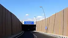 The Sahar Elevated Access Road, abbreviated to SEAR, is a dedicated, elevated, express access road in Mumbai[1] that connects the Western Express Highway (WEH) near Hanuman Nagar junction in Vile Parle, with the forecourts of Terminal T2 of the Chhatrapati Shivaji International Airport.[2] The road improves access and travel times between the WEH and the airport.[3] The 2.2 km long access road has 4 entry and 2 exit points. The road also includes an underpass for vehicles travelling on the WEH and a pedestrian subway;[4] as well as an underpass, a tunnel, and ramps connecting the highway to the terminal which bypasses the congested roadways below.