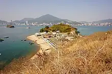 View of Shenzhen from Ap Chau. The islet on the left is Sai Ap Chau. The smaller islet between Sai Ap Chau and Ap Chau is Ap Lo Chun.