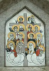 In Cornwall the town of St Blazey and the civil parish of St Blaise derive from his name, where the parish church is still dedicated to Saint Blaise. The council of Oxford in 1222 forbade all work on his festival.[9] There is a church dedicated to Saint Blaise in the Devon hamlet of Haccombe, near Newton Abbot, one at Shanklin on the Isle of Wight and another at Milton near Abingdon in Oxfordshire, one of the country's smallest churches. It is located next to Haccombe house which is the family home of the Carew family, descendants of the vice admiral on board the Mary Rose at the time of her sinking. This church, unusually, retains the office of "archpriest".[10]