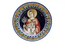 Inside the Civic Museum of San Gimignano there is a wood tabernacle painted by Lorenzo di Niccolò in 1402 depicting Saint Fina holding a model of San Gimignano along with eight scenes of her life and miracles. Another image of Fina is in the nearby church of Sant'Agostino, painted by Benozzo Gozzoli. Other artists depicting the saint's life include Piero del Pollaiuolo and Pier Francesco Fiorentino.
