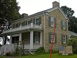 Salem was settled originally by Quakers with the intent that it be a community of Friends. In 1835 Aaron Street, while wending his way westward, came upon an uninhabited spot and declared "Now have mine eyes beheld a country teeming with every good thing…Hither will I come with my flocks and my herds, with my children and my children's children, and our city shall be called Salem, for thus was the city of our fathers, even near unto the seacoast."[3] Independently another Quaker, Isaac Pigeon, who may have visited the spot before Street, brought his family to the area. They became the first citizens of Salem, and with Peter Boyer, began to recruit other Quakers to migrate westward to join them. As early as 1837, Friends meetings were held in private homes, and after the village was laid out in 1839 by Aaron Street Jr., and Peter Boyer, a meeting house was built.[4] From the early years members of other Christian denominations settled in Salem, so it was never an exclusively Quaker community.