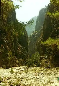 The Samariá Gorge (Greek: Φαράγγι Σαμαριάς or just Φάραγγας) is a National Park of Greece since 1962 on the island of Crete – a major tourist attraction of the island – and a World's Biosphere Reserve.