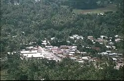 There is a preschool, six primary schools, three secondary schools and one pre-secondary school. There is also a police station, a helipad and a community health centre.[5] From the old market building, only the concrete walls are left since its destruction by the Indonesians. Also in ruins is the ancient Catholic Church. However, it had already been destroyed in the Second World War by the Japanese.