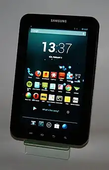 The Samsung Galaxy Tab 7.0 or simply Samsung Galaxy Tab is an Android-based mini-tablet computer produced by Samsung.[2] Available from 5 November 2010. The tablet was first introduced on 2 September 2010 at the IFA in Berlin.[3] The Galaxy Tab was the first Samsung Android-powered tablet to be released.[4]
