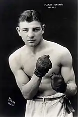 In his first professional match, on December 7, 1920, Mosberg defeated Frank Cassidy, in a close ten-round newspaper decision of the Philadelphia Record at the Fourth Regiment Armory in New Jersey. Other newspapers wrote that Mosberg had clearly won on points scoring, but admitted the bout was close. Cassidy had the stronger punching in the bout, but Mosberg was credited with greater speed, and started off with a points lead in the first two rounds. In the closing round, Cassidy bore in to Mosberg with strong body blows, leading at least one reporter to write that the bout was a draw.[11] Mosberg was happy to face Cassidy, who had decisioned him in the Olympic finals in Boston earlier that year. Cassidy had been a great amateur boxer who was an AAU Champion in 1918 and New York State Amateur boxing champion in 1919. But Mosberg knew Cassidy's fighting style and was willing to prove he could defeat his former Olympic rival in a final meeting. Dave Driscoll had promoted the bout, and got Mosberg $1,500 for the well-attended match. The boxing card included Mosberg's friend and future lightweight contender Mel Coogan against Jewish boxer Eddie Wallace. It also featured future light heavyweight champion Gene Tunney, the "fighting Marine". Mosberg was praised for his aggressive boxing, and claimed to have been particularly skilled in infighting in his early career.[12][13] In his second bout, on the afternoon of December 25, 1920, Mosberg defeated Paul Edwards, a more experienced and proven opponent than Cassidy, in a decisive ten-round unanimous decision at the Commonwealth Sporting Club in New York. Both boxers were from New York's East Side, and the fighting was fast and furious, with Mosberg landing more blows and more telling ones than his opponent. Mosberg "made a chopping block" out of his more experienced opponent, but though he tried desperately, was unable to put him away in the later rounds, as Edwards assimilated the blows and sailed in for more.[14] Edwards, a quality journeyman featherweight, had met Patsy Cline, Johnny Clinton, and Joe Tiplitz, but he was on the downside of his career, and had not amassed an impressive record against the contenders he had faced.[6]