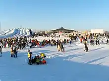 The Sapporo Satoland was established in 1995. Facilities have been run by the Sato Mirai Project Group since April 1, 2006.[1] After the expansion to the west side in 2004, the total area of the Satoland was extended to about 74 ha.[2] The Sapporo Snow Festival, which has usually had three main sites, gave up using the Makomanai site in 2005, and moved instead to Satoland, where huge snow slides and a maze have featured during the festival. From the 2009 festival, the site switched to the nearby Sapporo Community Dome (Tsudome). Remains of the early Satsumon period, a prehistoric period in Hokkaidō between 9th and early 10th century, are located in the park, and grain relics show that there was cultivation here during the Satsumon period. Agricultural activities in the Satsumon period were previously unknown, and the relics in Satoland have provided a clue to understand the origin of agriculture in Hokkaidō prefecture.[3]