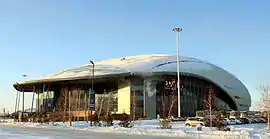The Saryarka Velodrome (Kazakh: Сарыарқа велотрегі, Saryarqa velotregi; Russian: Велотрек Сарыарка) is an indoor cycle-racing track or velodrome that is located in Astana, Kazakhstan. Constructed in the shape of a racer's helmet, the velodrome is a unique sports complex that not only houses a cycling track, but its 58,000 metre square surface area also contains a sports courts, a fitness centre, a swimming pool, a basketball court, an ice rink, as well as conference halls, a restaurant and a hotel. It is mainly used for cycling and basketball.
